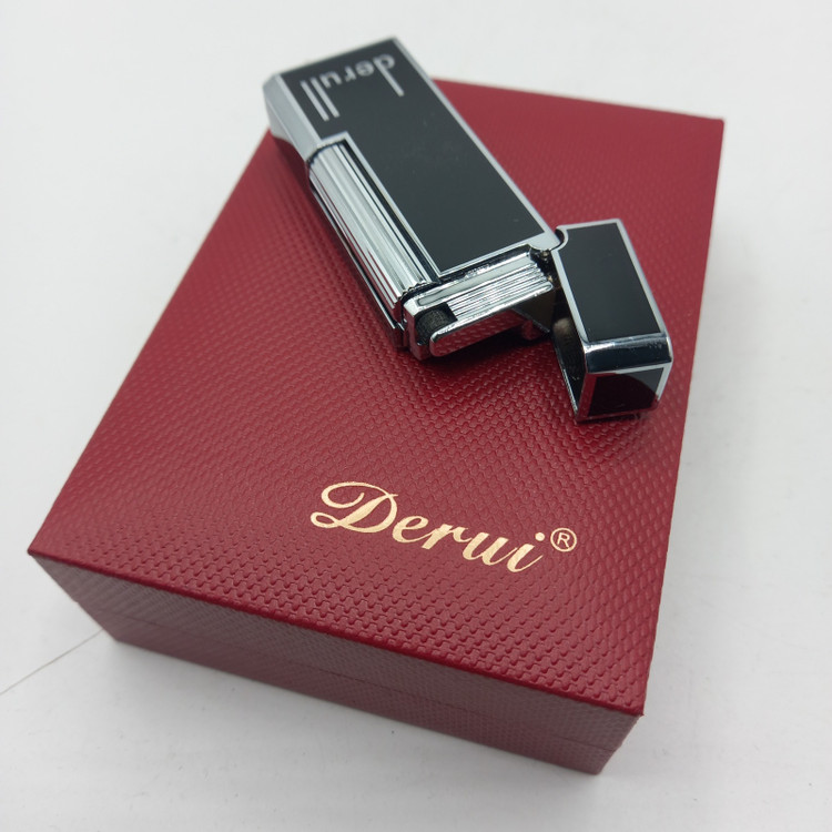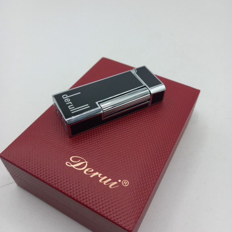 فندک گازی جرقهای Derui مشکی-نقرهای لوکس - شعله ضد باد و جعبه هدیه